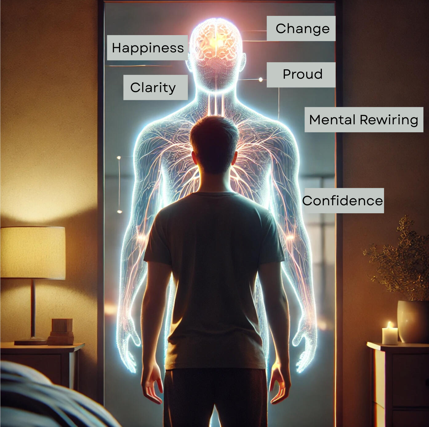 This is not therapy or coaching. This is neuroscience-backed program focused on helping you change your self-image through action. We work on patterns, mindset, habits, and behaviour — all structured around who you want to become.